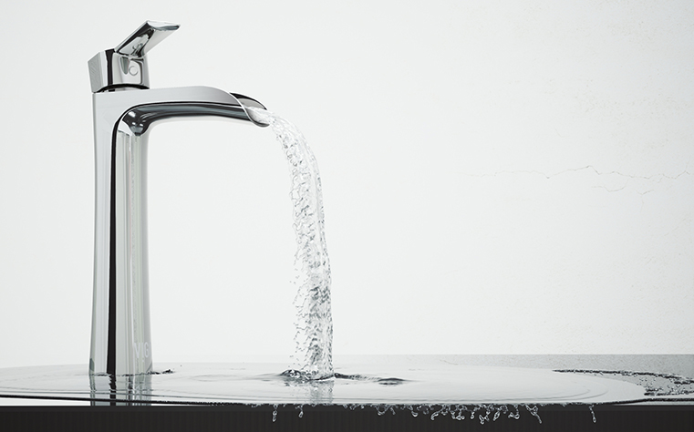 Flache Oberseite mit Einloch-Wasserhahn mit Füßen